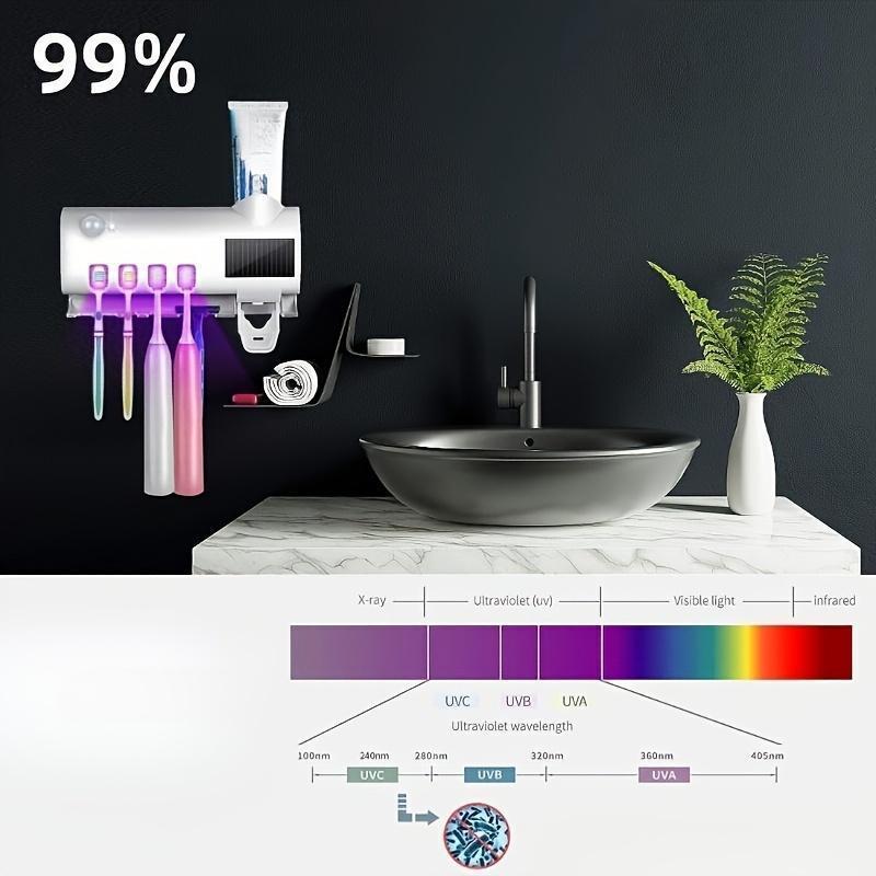 Black Portable Rechargeable Wall-Mounted Toothbrush Holder with Auto Shut-off, Toothbrush Sanitizer, Cleaning and Air Drying
