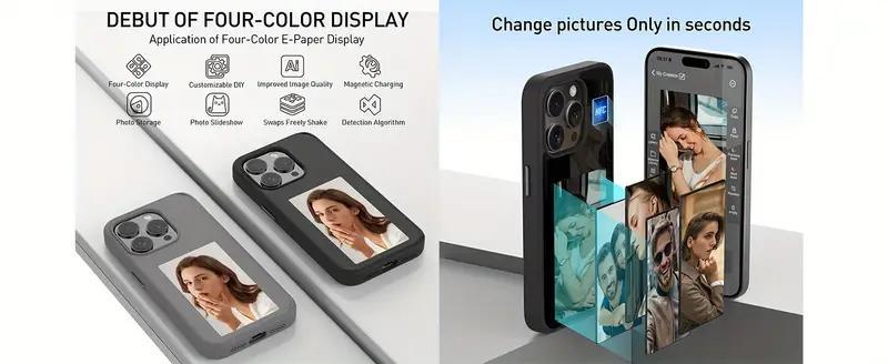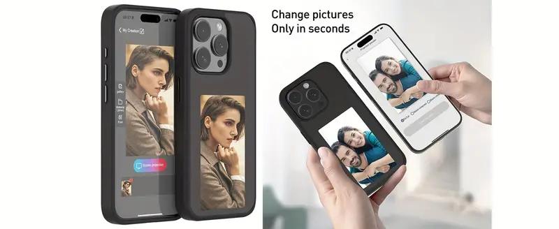 DIY E-Ink Phone Case, Screen Protective Smart Phone Case for iPhone 15 PRO Max, 14 PRO Max, 13 PRO Max Durable Protection funny phone silicone bank
