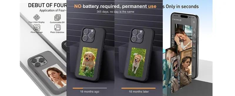 - E-Ink display allows you to customize the back of your phone with personalized designs or images.