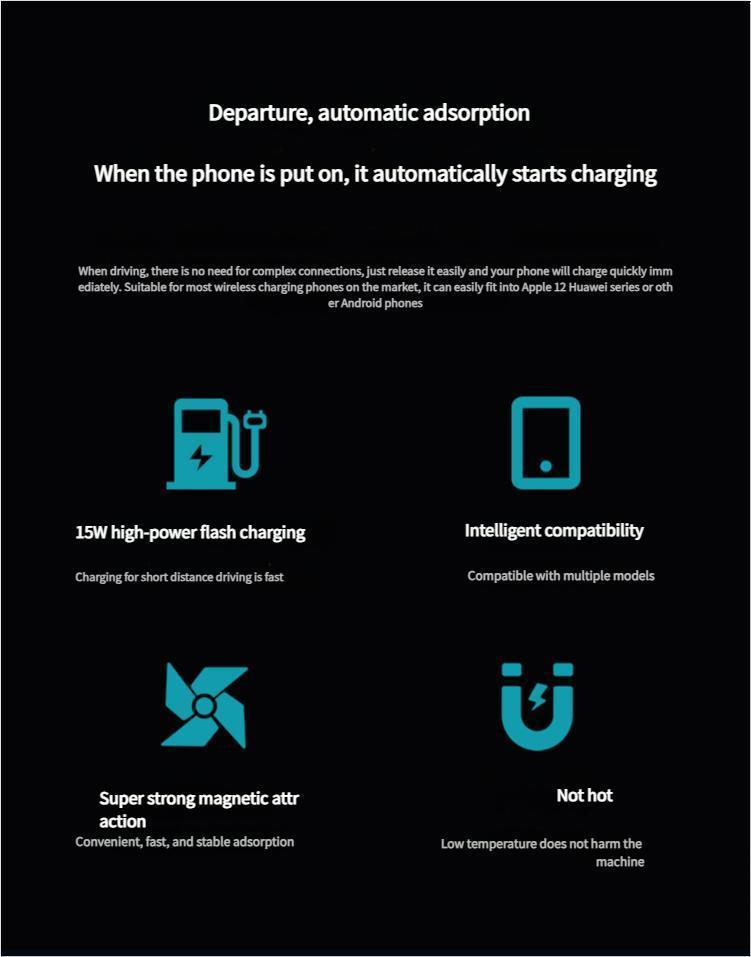 Introducing the new model of the Magnetic Wireless Car Charger Magsafe, designed to provide fast and convenient charging for your car.