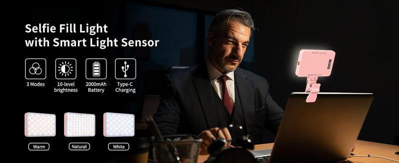 【Unique Smart Light Sensor Design】Press and hold the M button for 3 seconds, the selfie light turns on automatic light sensing mode, and the battery indicator lights will flash for 2 cells. With Unique Smart Light Sensor, the phone light will automatically adjust the brightness based on the current ambient brightness, which can meet more photography environment requirements and more convenient to use. Whenever day or night, indoor or outdoor, the design makes it easier to shoot video and selfie.